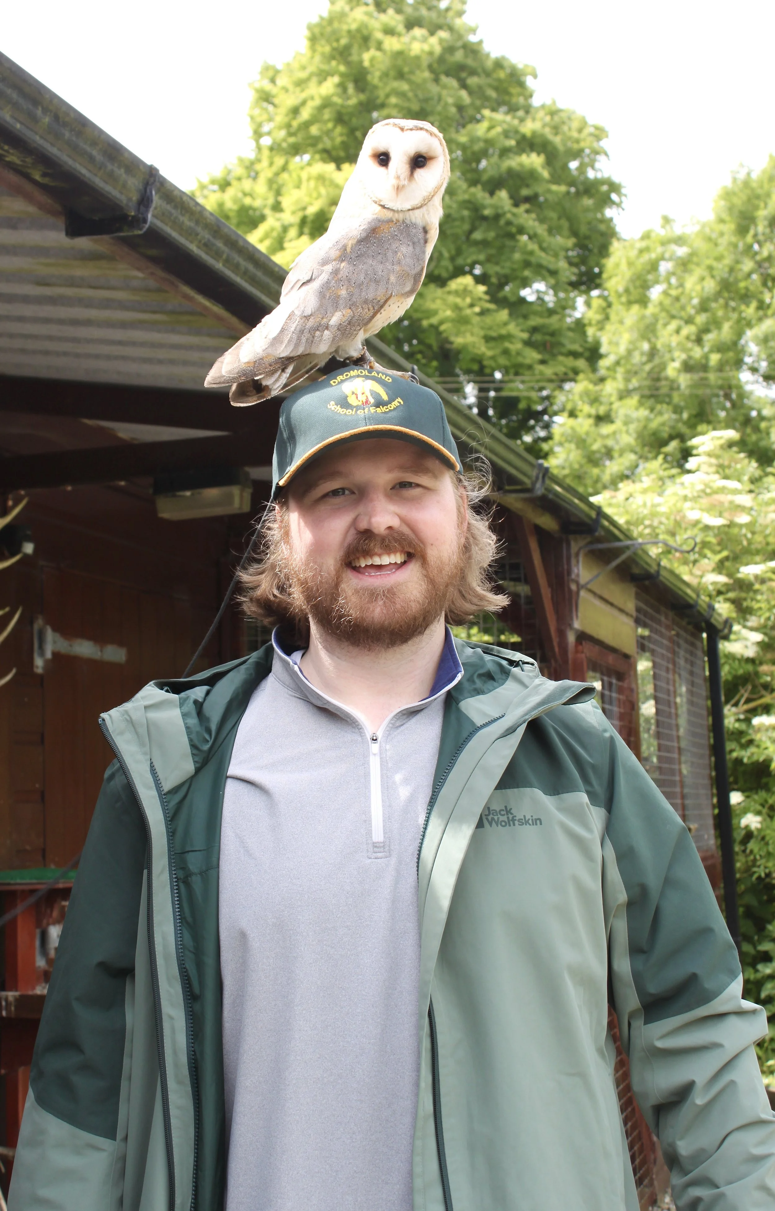 CJ with his new hat & Pickles, the barn owl